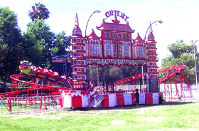 There is no turning back from the treacherous Orient Express, a dragon coaster in a red pagoda.